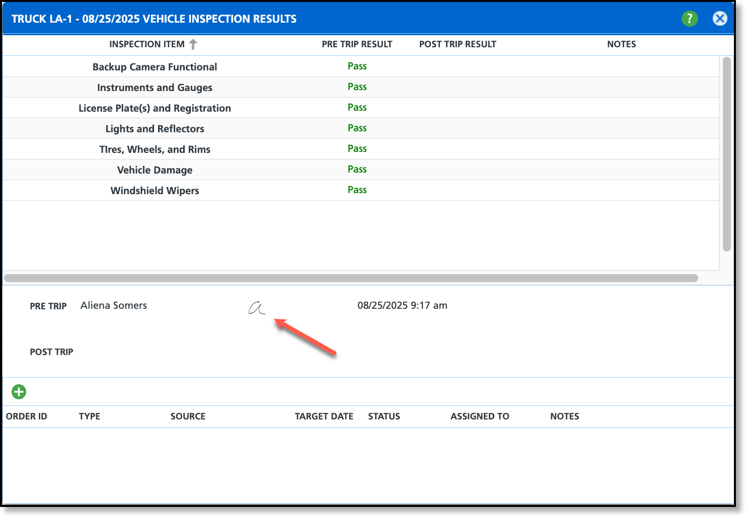 Pathway: Operations > Dispatch > Pre-Trip Inspection Results