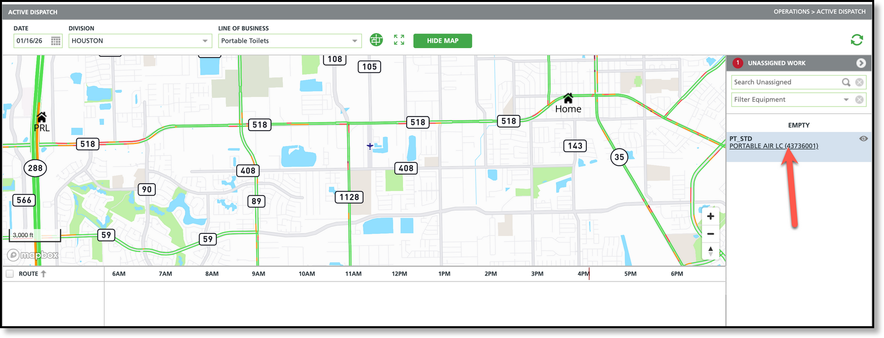 Active Dispatch now supports the EMPTY work type action category used for portable toilet operations. Previously, work orders with this category were not recognized.