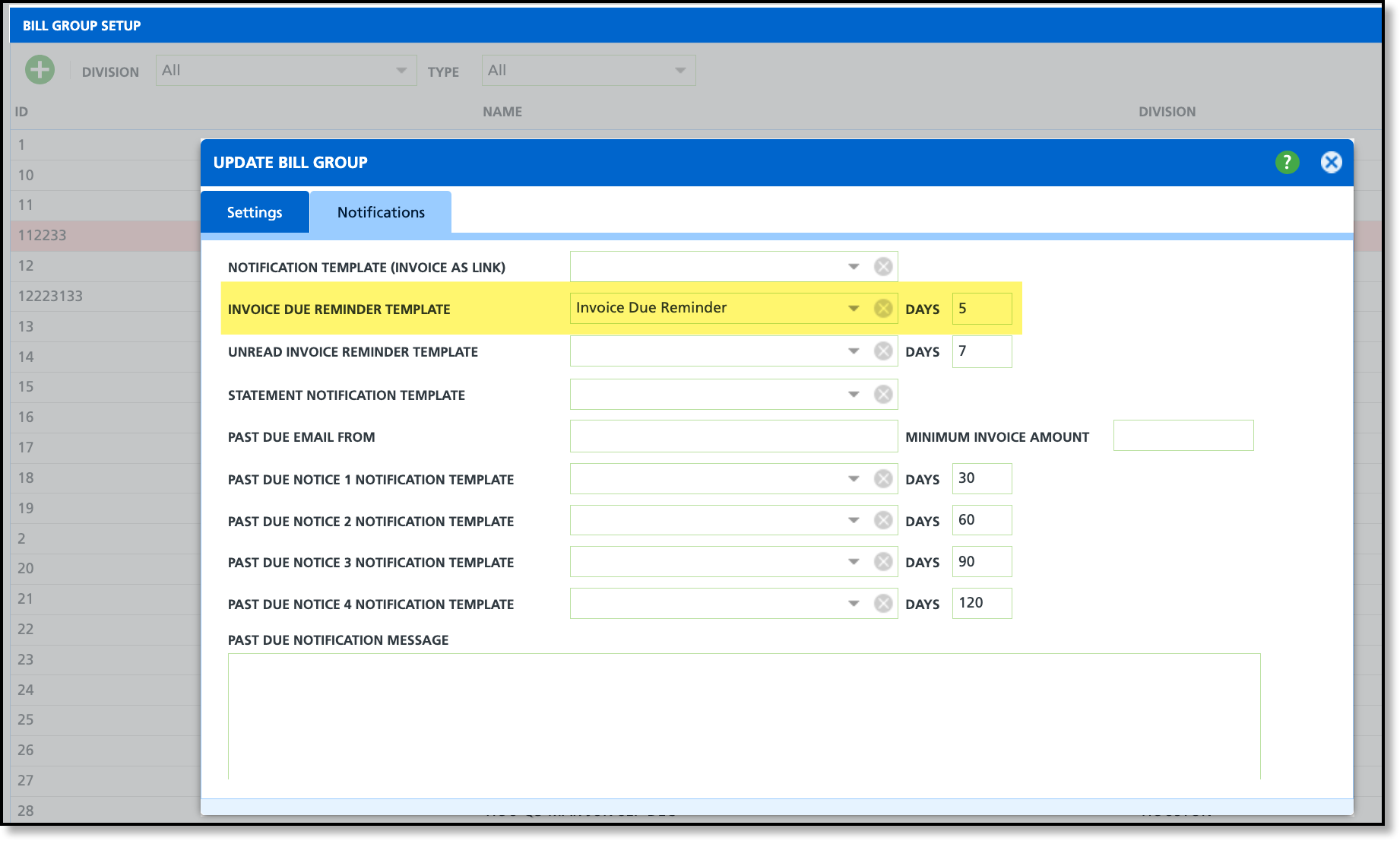 Pathway: Setup > Accounting > Bill Group