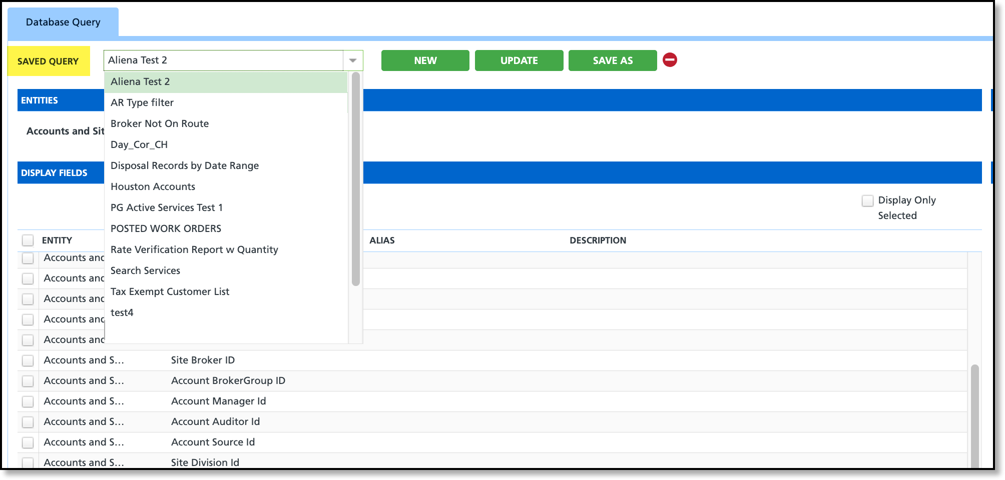 The sort order of the Saved Query list has been corrected to display in alphanumeric order. To ensure the order remains accurate, avoid using leading spaces in query names, as they will cause those queries to sort to the top of the list.