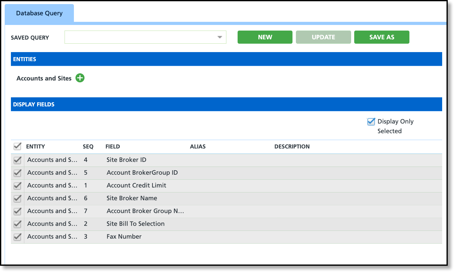 Pathway: Database > Database Query > Accounts and Sites [entity]