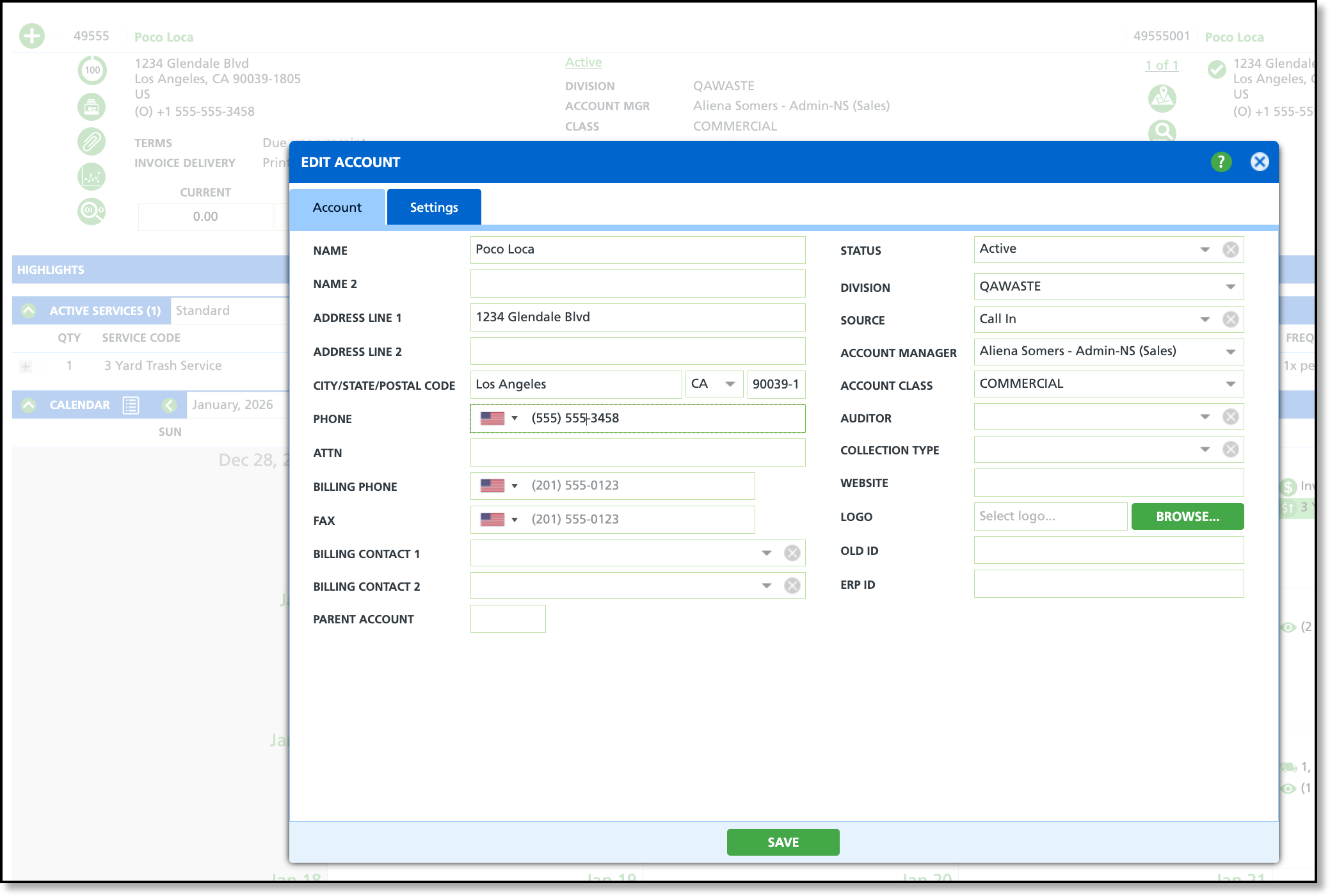 Pathway: Customer Service Screen > [double or right click] Edit Account