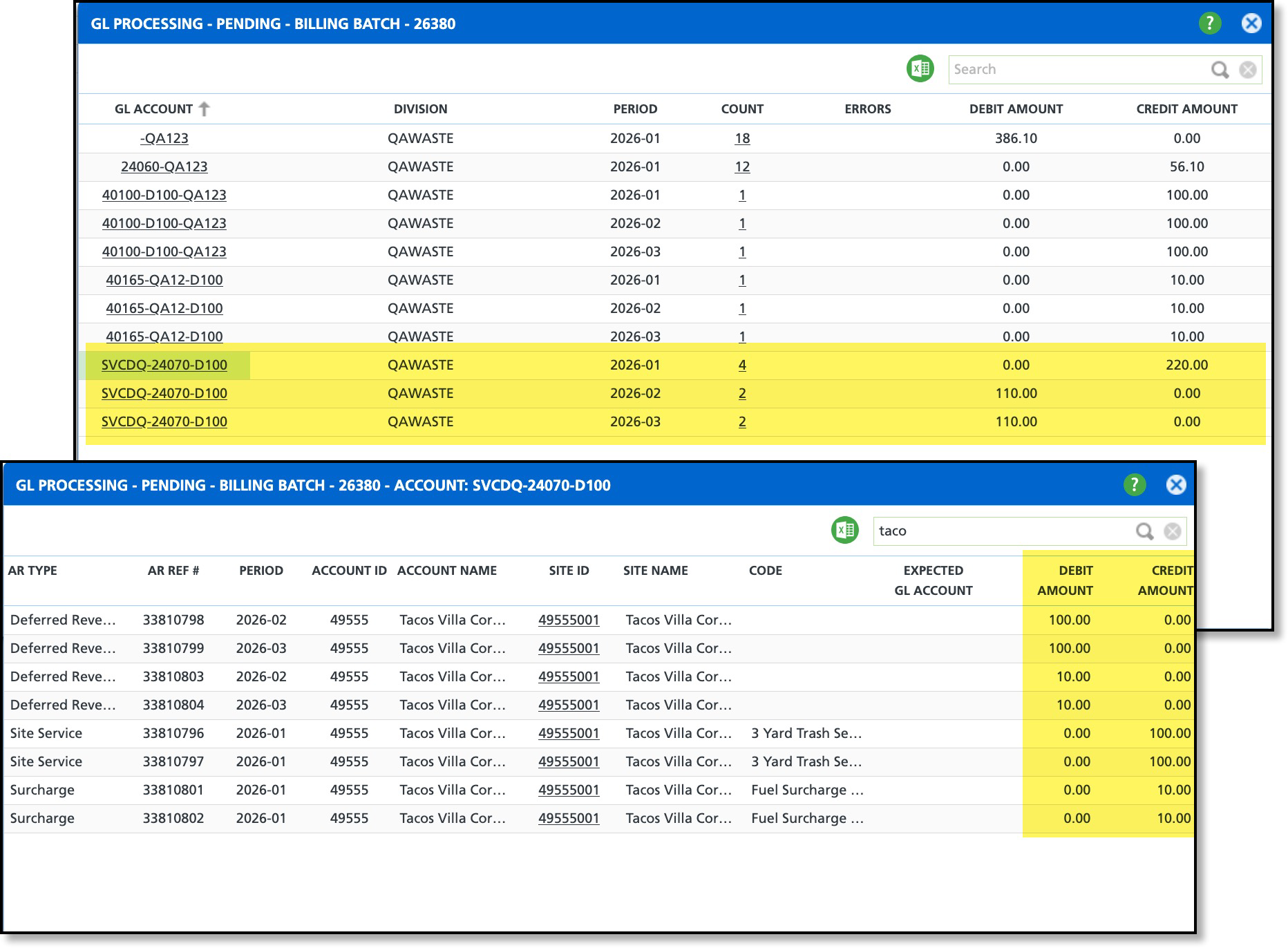 GL Transaction Processing example