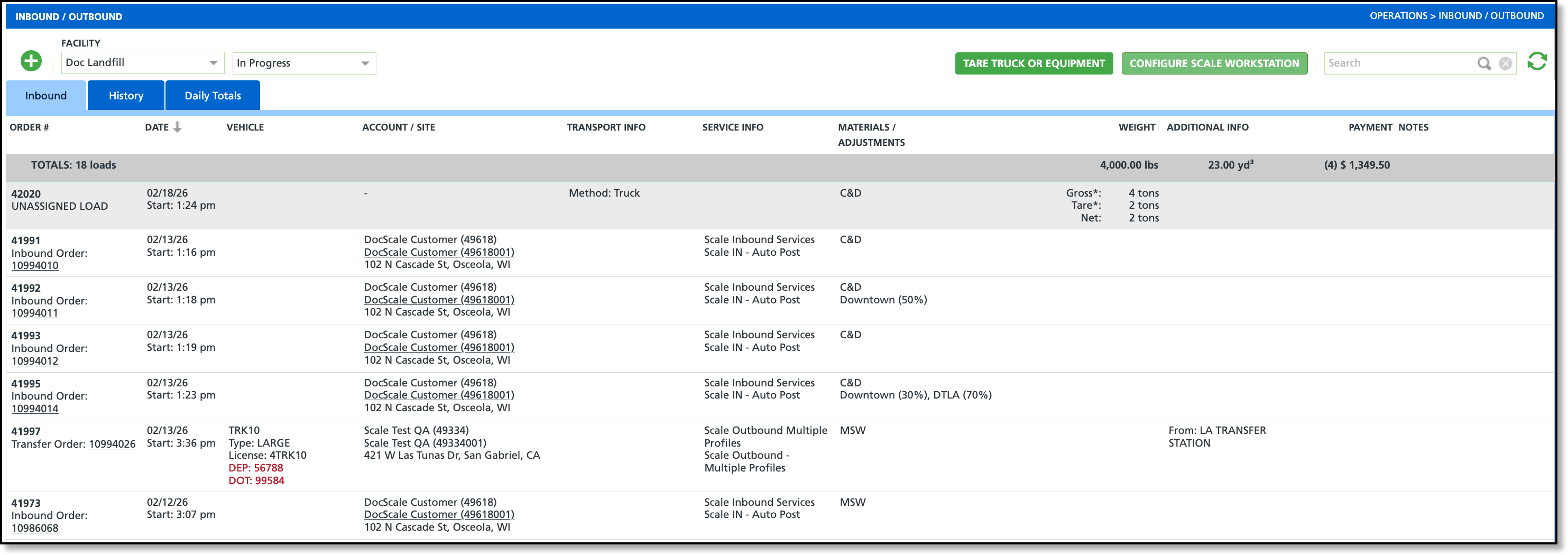 This setup is the standard requirement across all scale scenarios, including Roll-off, Cash, and Third-Party customers. Review the setup documentation here: Scale-In Setup to process scale tickets on the Inbound/Outbound screen.