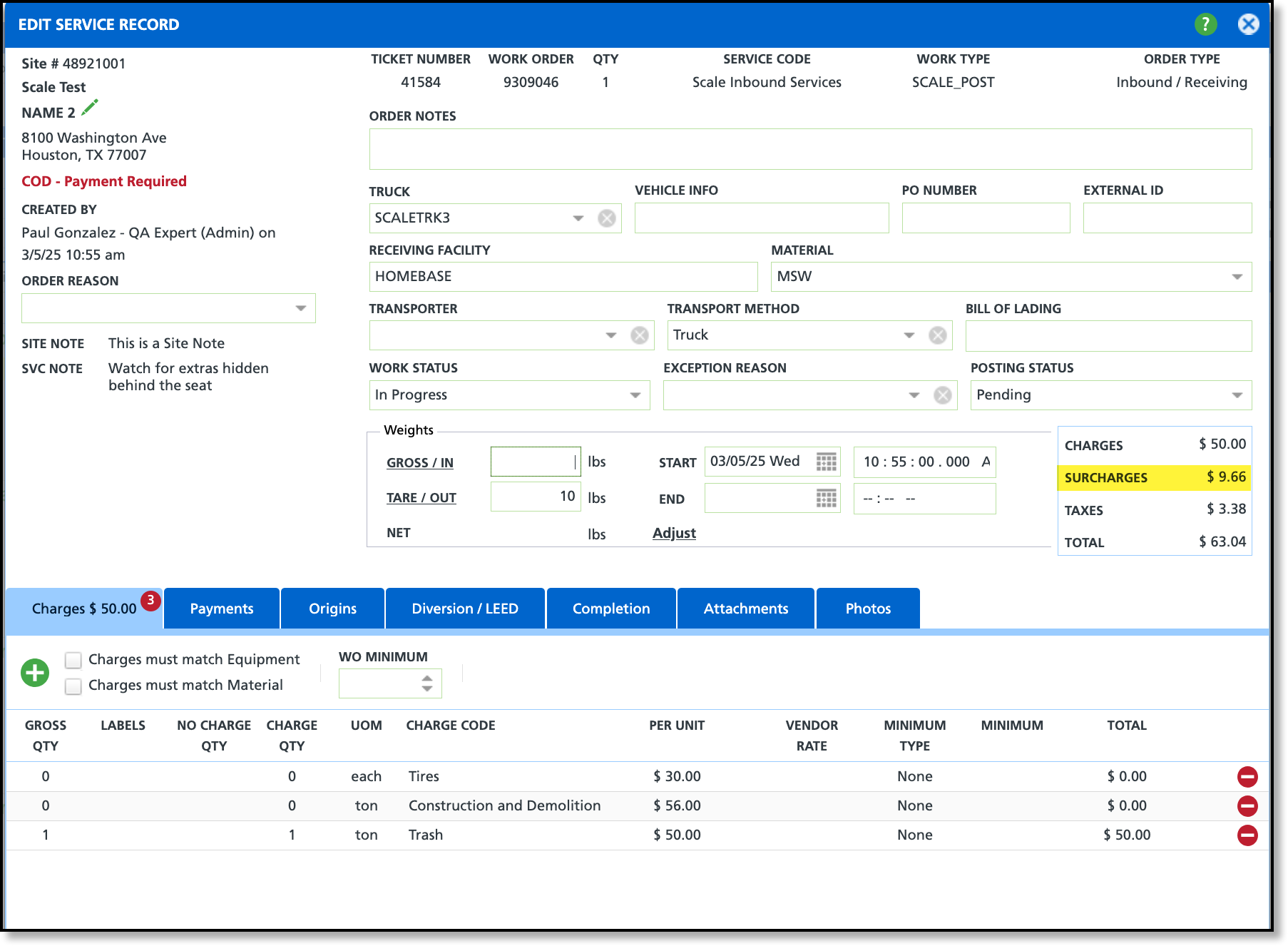 Inbound tickets were previously not calculating the percentage surcharge for charge codes. This has been resolved.