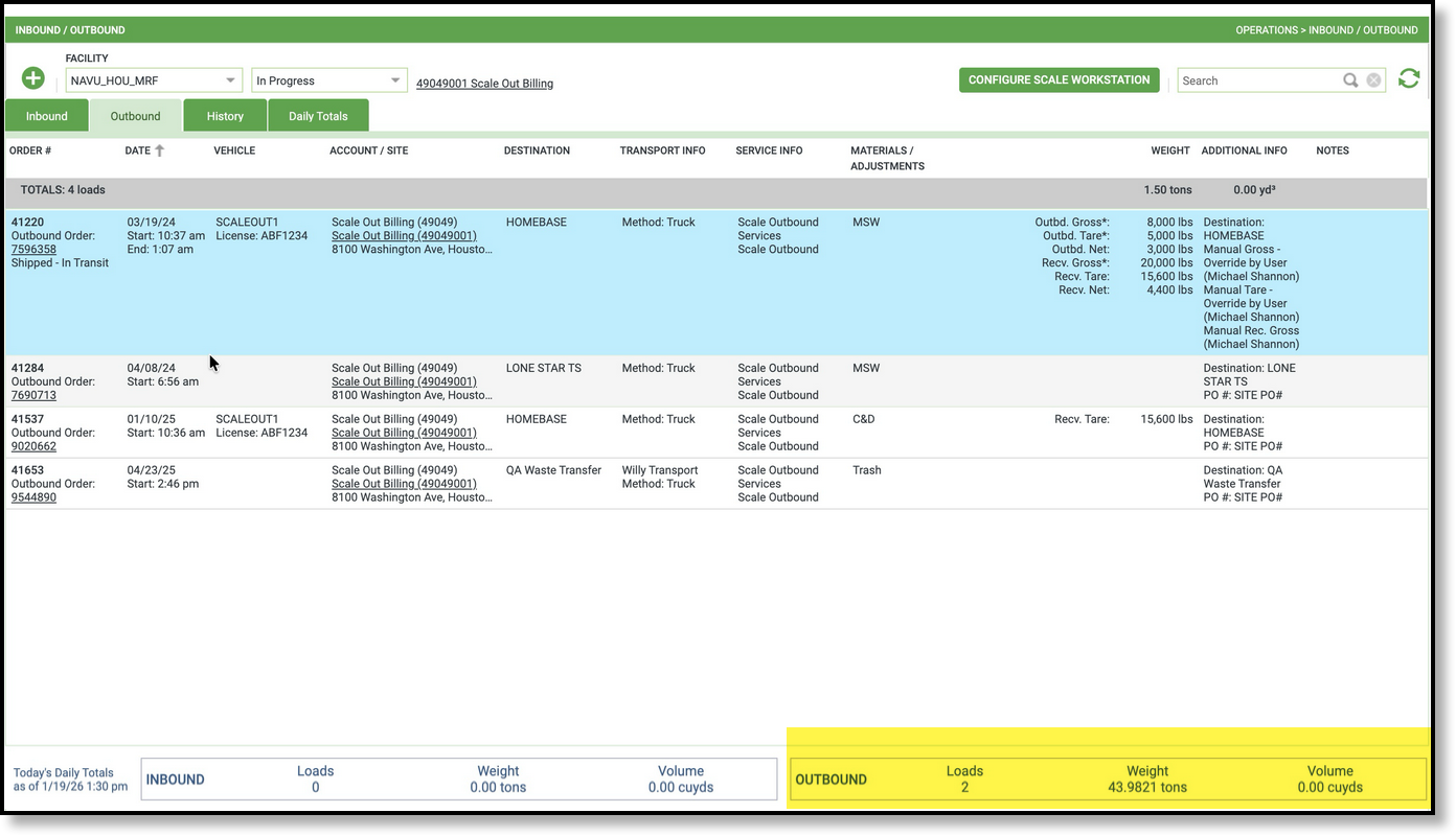 An issue has been resolved where daily totals were not updating for outbound loads in the Inbound/Outbound screen.