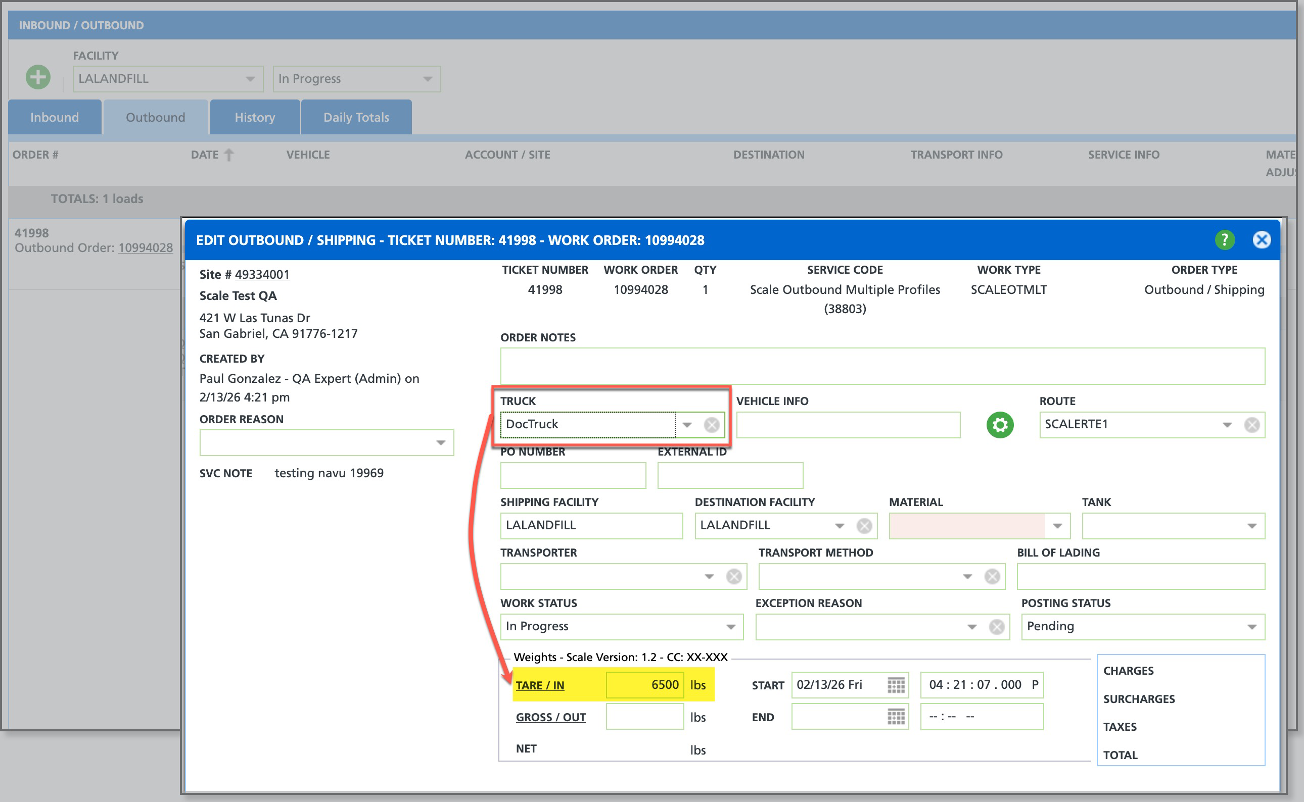 An issue has been resolved where the Tare / In field on outbound scale tickets did not update with the correct weight when the truck was changed.