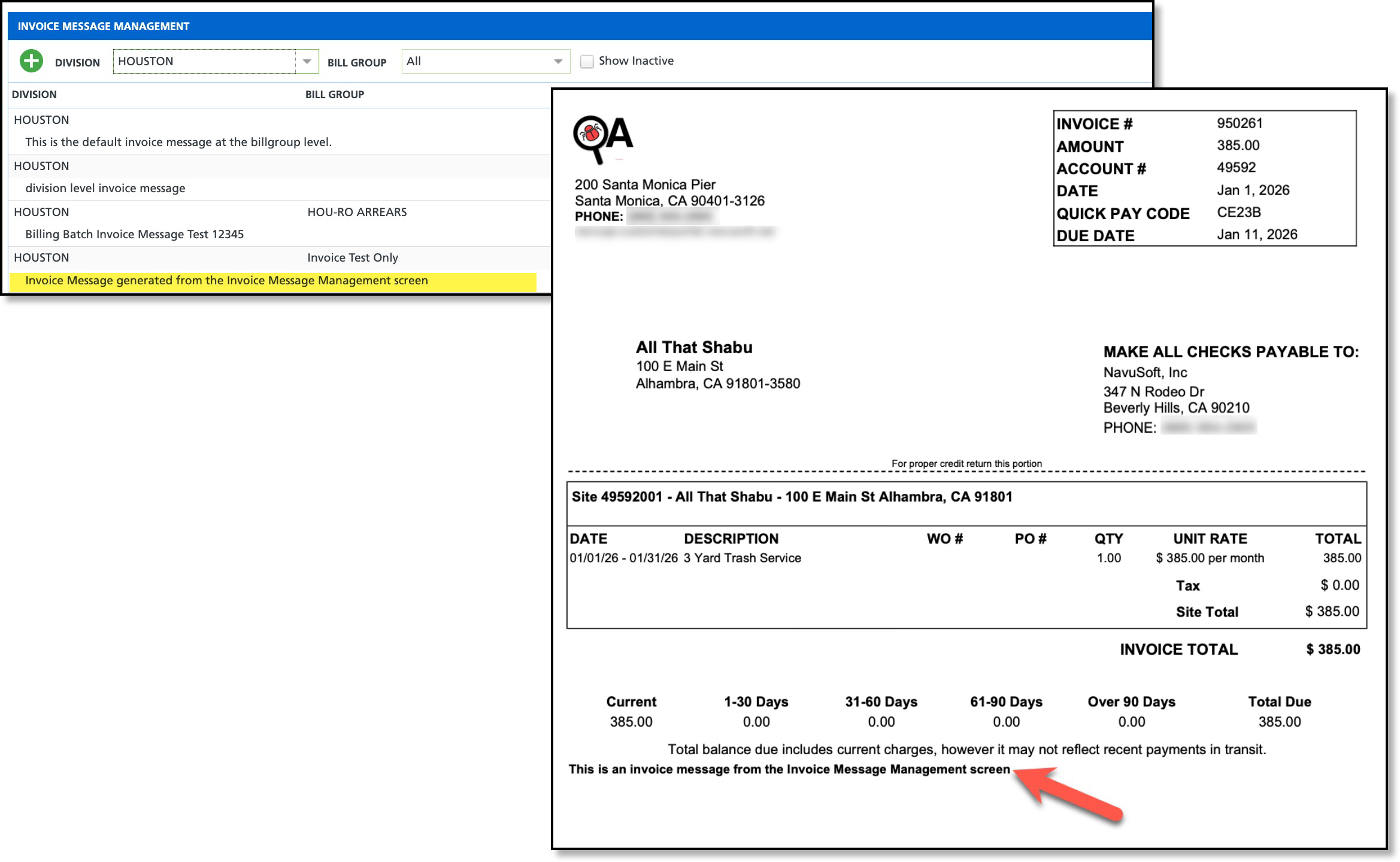 Pathway: Accounting > Invoice Message Management