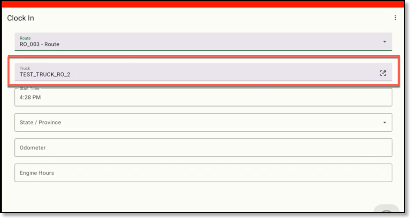 Previously, when a driver logged into the Driver App and was assigned to a single route, the Clock In screen still required them to select the Route field before the Truck drop-down would populate. The logic has been updated so drivers assigned to a single route can bypass the Route drop-down and select a Truck directly.