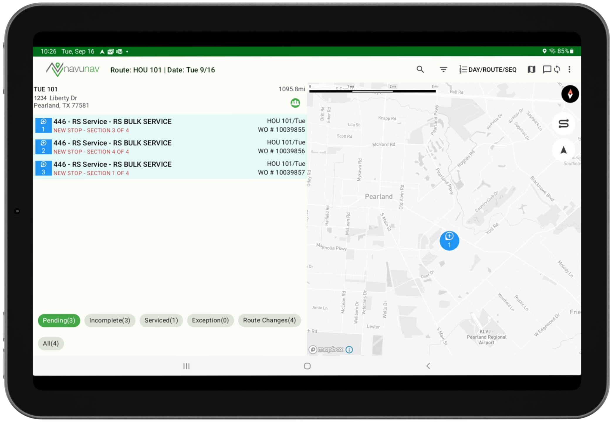 An issue has been resolved that caused the map to recenter over Europe after completing menu actions such as recording downtime or capturing a a signature on stops.