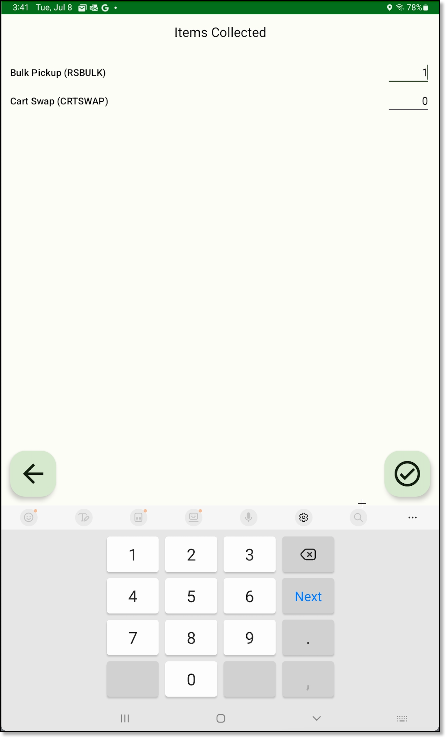 The issue that prevented NavuNav users from returning to the route stop list after entering values in the Items Collected screen has been resolved.