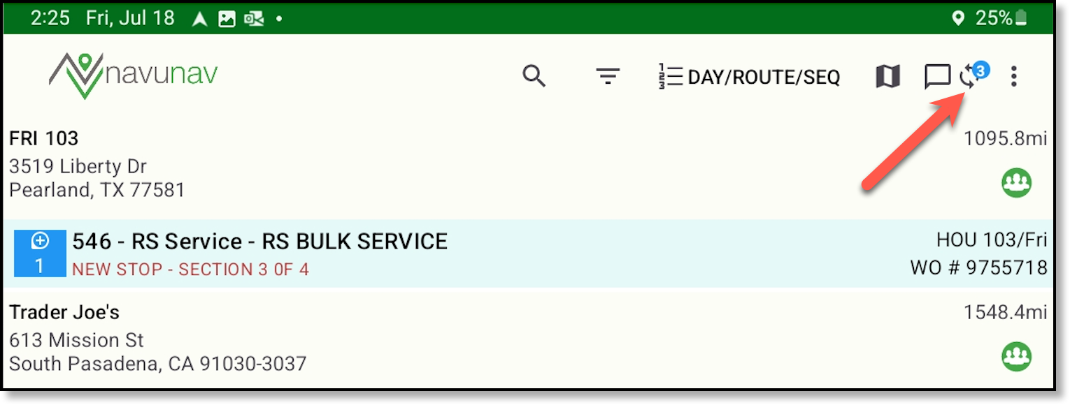 A Sync Status icon has been added to NavuNav, displaying the total number of items pending synchronization.