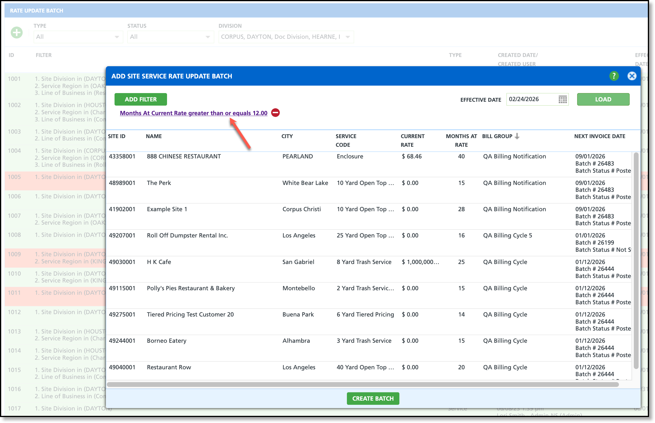 An issue has been resolved that caused the Months at Current Rate filter in Site Service Rate Update Batch from saving and returning results.