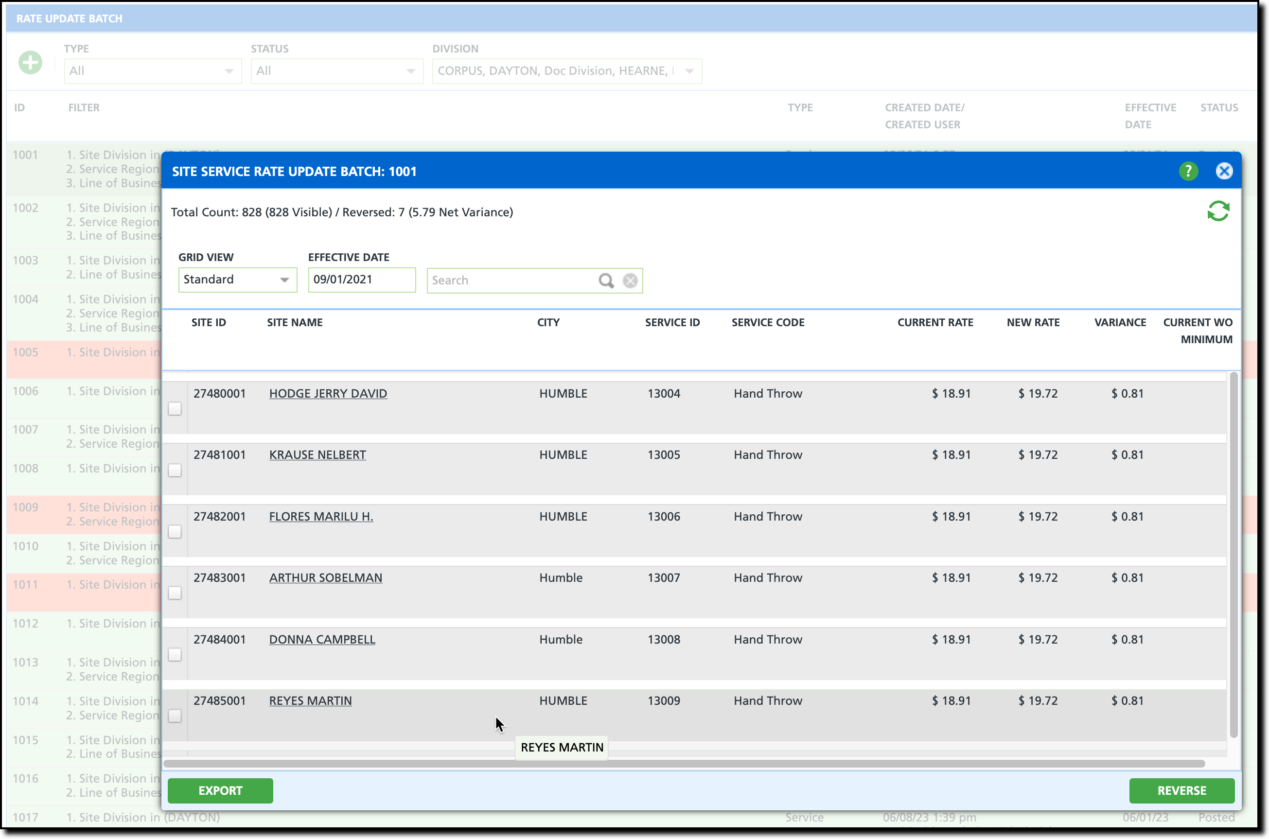 An issue has been resolved where rate history updates were applied to sites that were not selected in a Rate Update Batch. In some cases, unselected sites received new start and end dates in rate history even though no rate change was made.