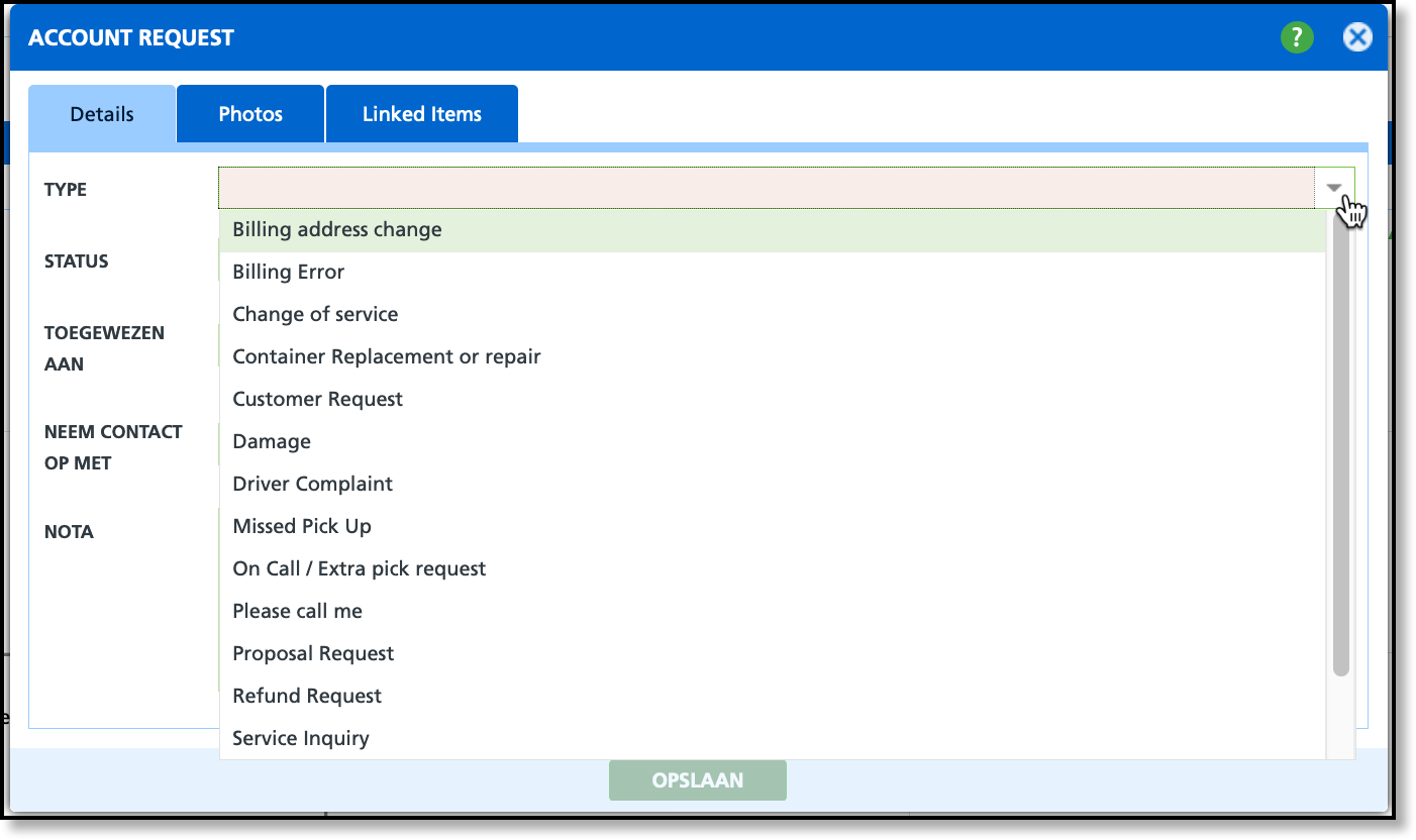 Logic has been corrected to request types to restrict what is available to only active types. Pathway: Accounts > Search > Accounts