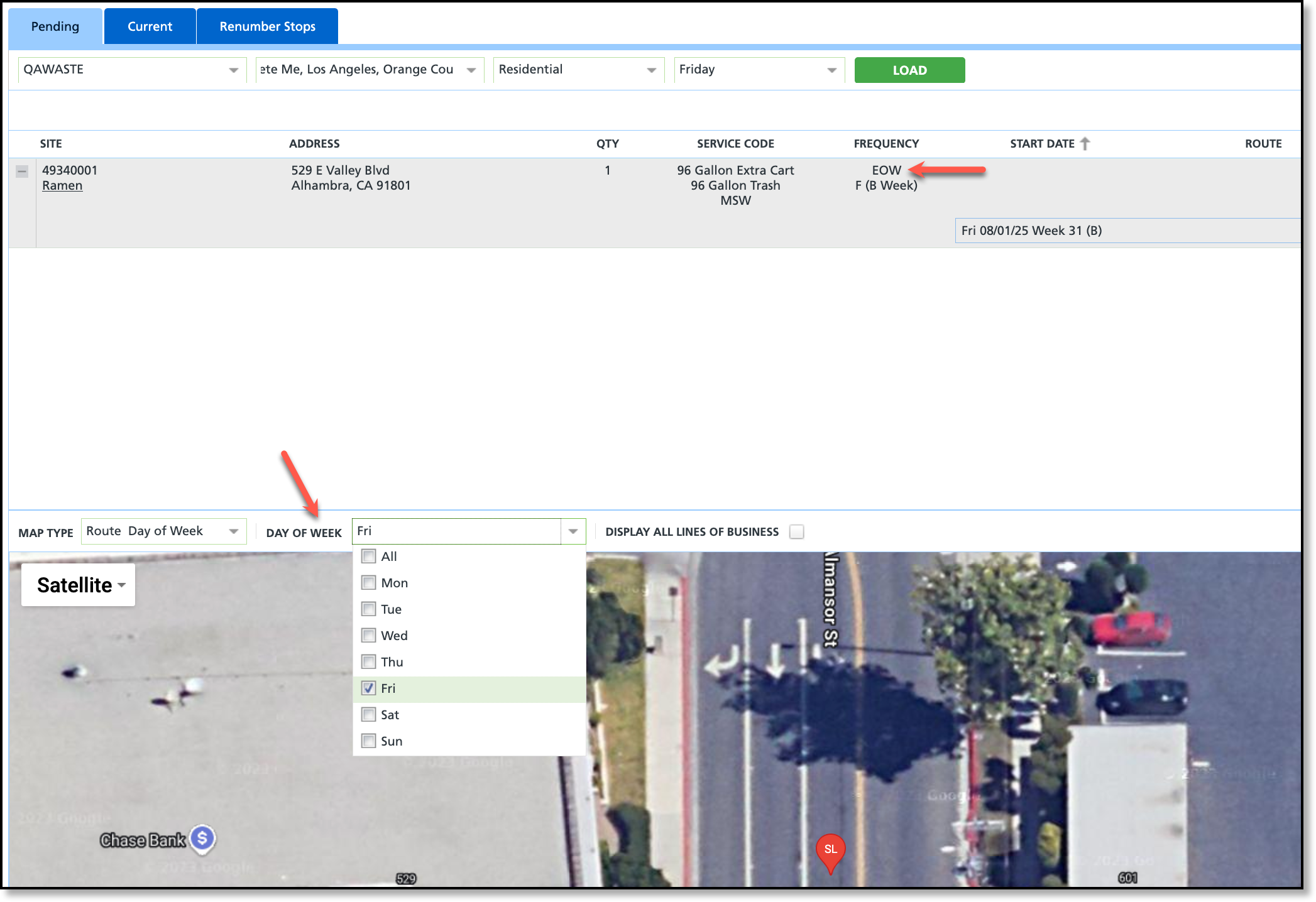An issue has been resolved in the Pending tab of the Route Management screen where the Day of Week drop down was not populating for EOW services.