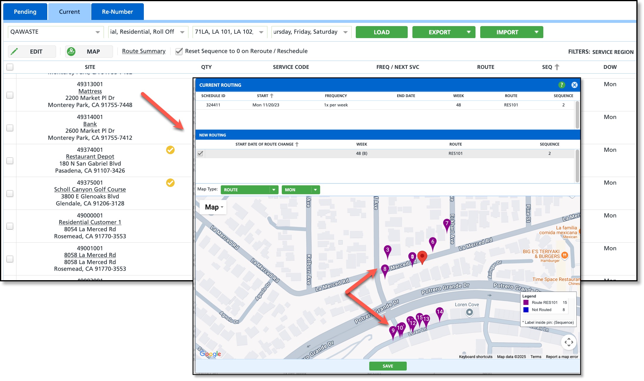 On the Current tab in Route Management, double-clicking a site to display its location on the map previously failed to show nearby location pins. This has been resolved.