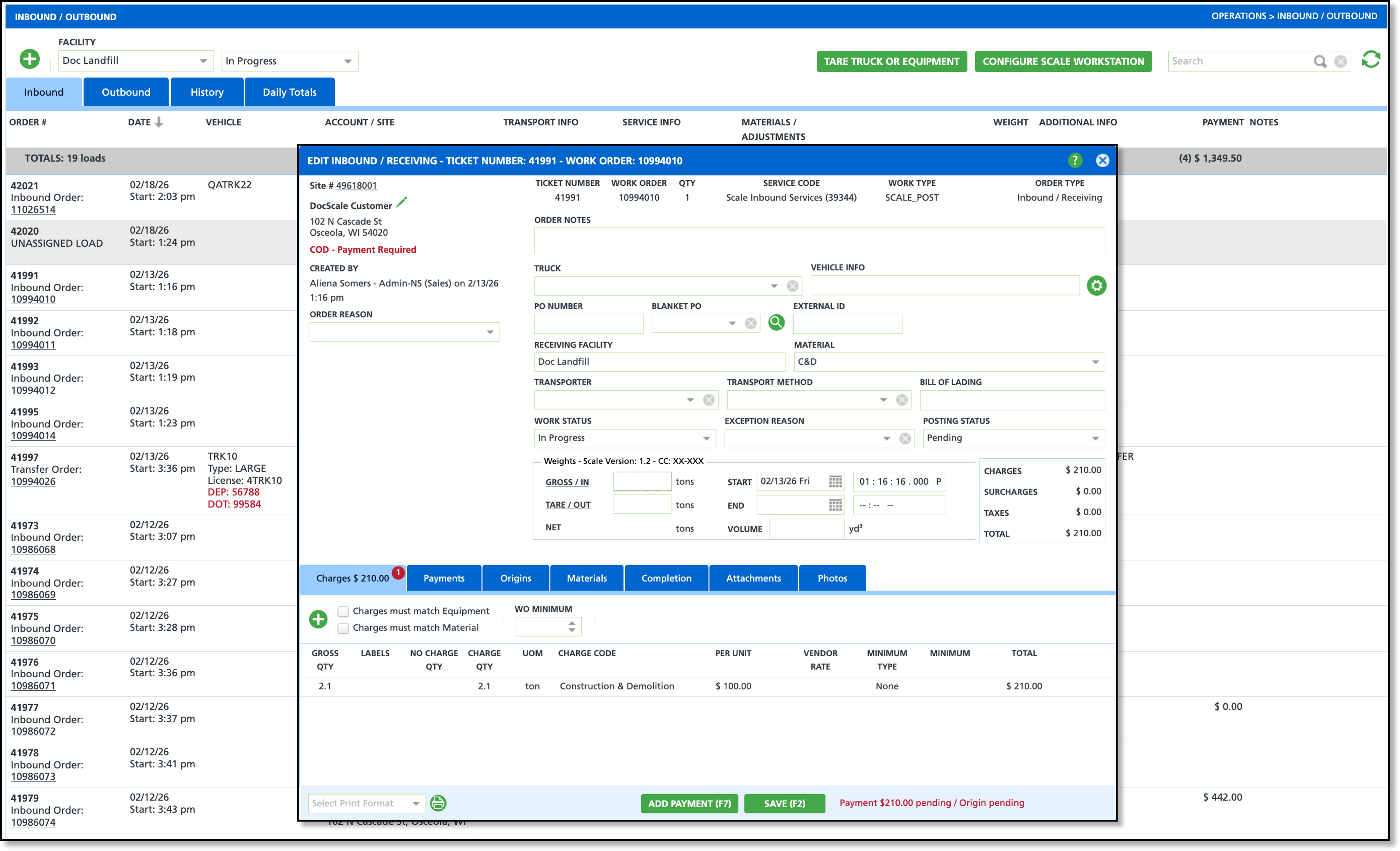 The following setup applies to cash-pay customers—those who infrequently bring waste to the facility for disposal and do not have an account it can be charged against.