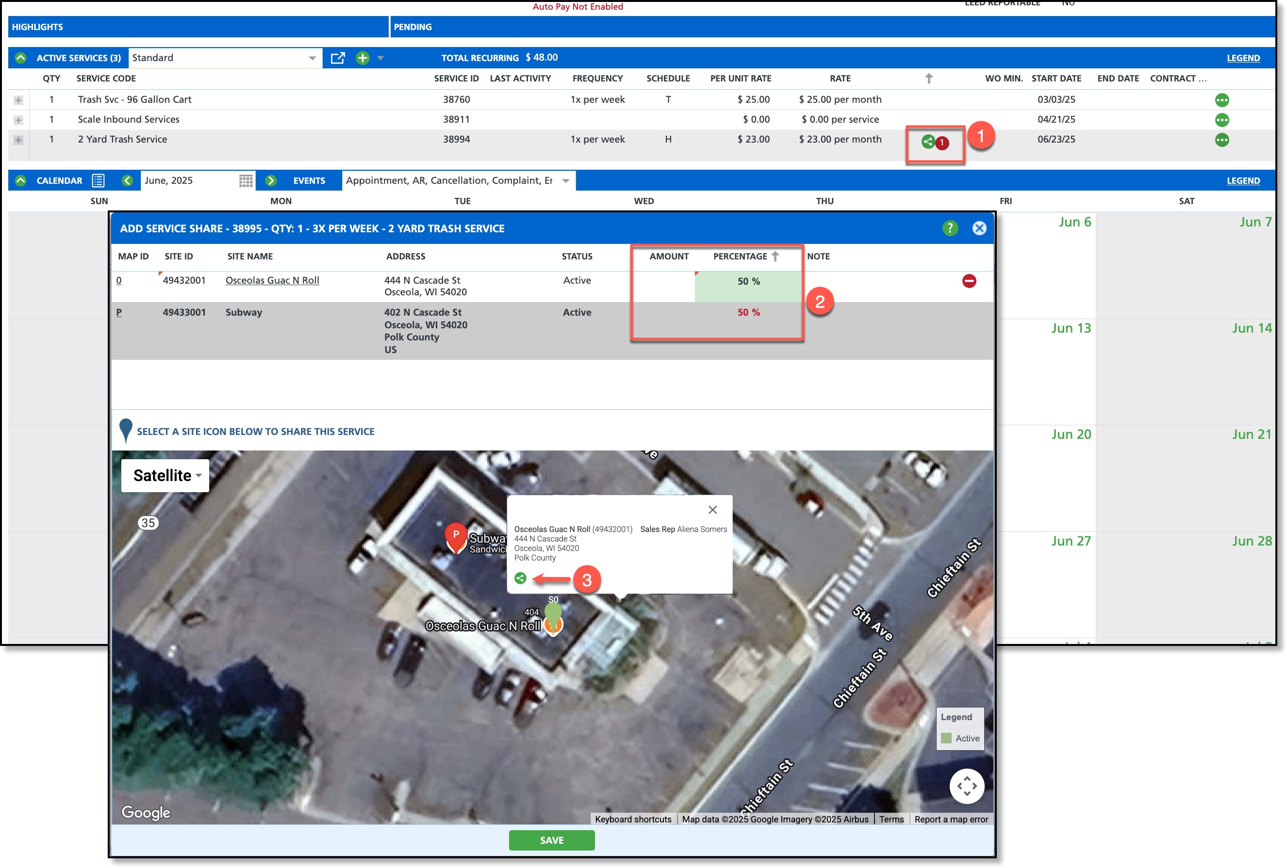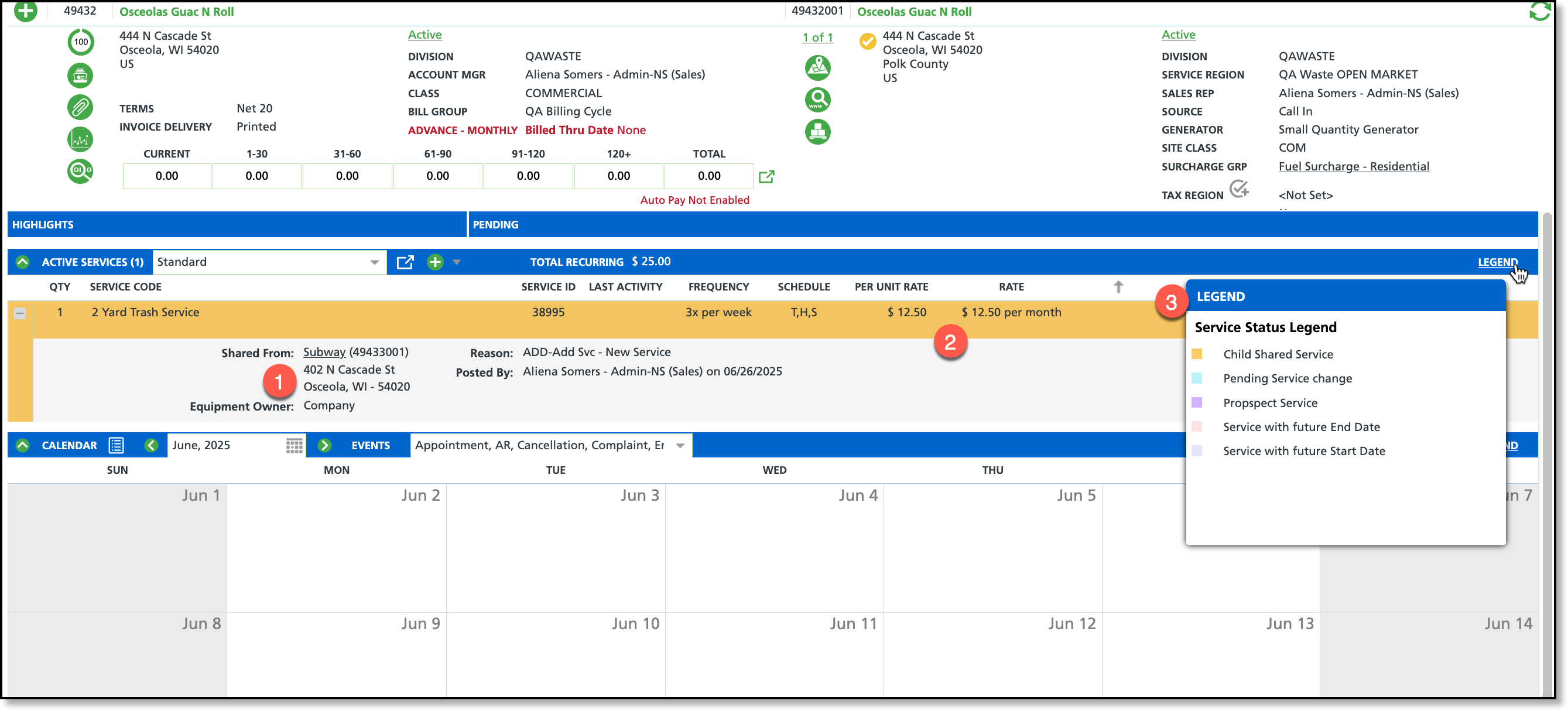 - The Per Unit Rate and Rate are shown based on the percentage or amount defined for the shared service.