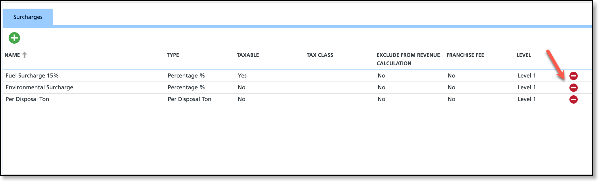 - Select the green ' + ' add icon for each surcharge you would like to add to the surcharge group.