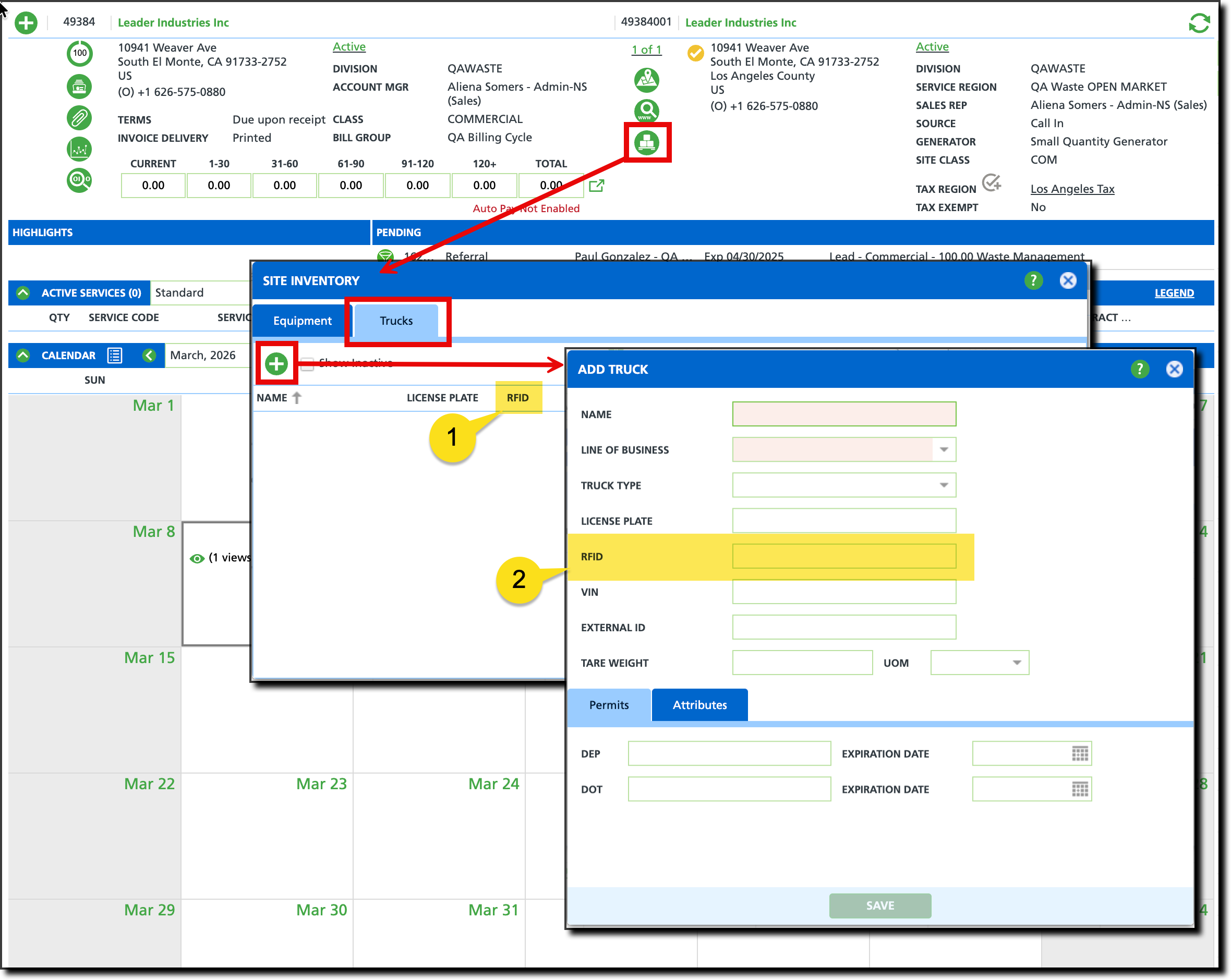 Within a specific account's Site Inventory, the new RFID field has also been added to the: