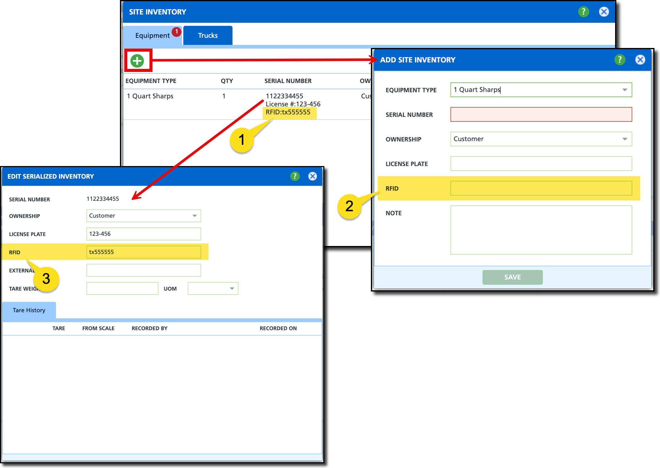 Within the Truck Setup tool, the RFID field will be displayed in two areas: