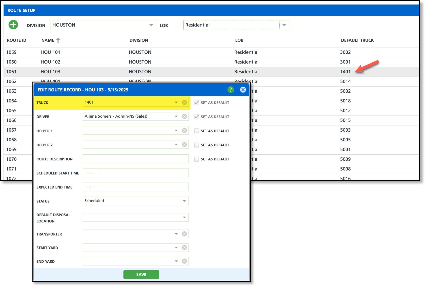 An issue has been resolved that caused the default truck to display inconsistently between Route Setup and Edit Route Record.