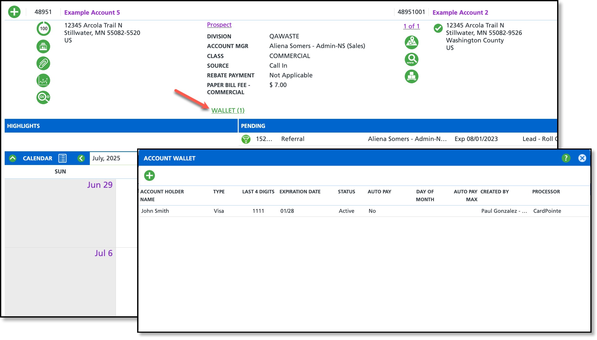 The Wallet feature is now available for prospect accounts. When viewing the Account Wallet for a prospect, the View History and Post Payment columns are hidden.